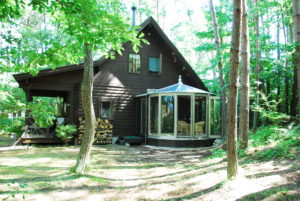 写真をご覧ください。とぉ~っても雰囲気のあるログハウスに、まぁ~るい(半円形)物がくっついていますよね?