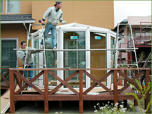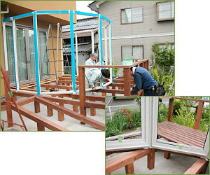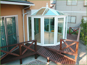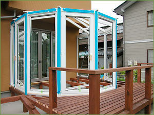 本施工例はウッドデッキを新たに施工し、その上にサンルームを建てた物件です。