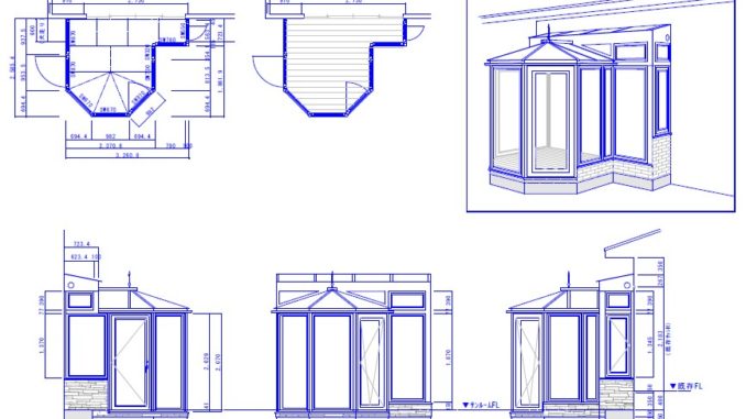 軸組材: アルミフロント材(㈱LIXIL フロンテック) 70見込 ホワイト色 ● 柱 150°角度方立×6本 屋根構造材: 垂木(木造) 桧材50㎜×100㎜ 長さ約1,850㎜×10本 |