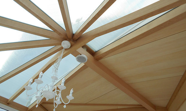悠Uサンルームの基準屋根仕様は強化ガラス(厚さ5mm)とツインカーボヒートカット(厚さ10mm)ですが、屋根の一部を遮熱・断熱仕様にすることができます。