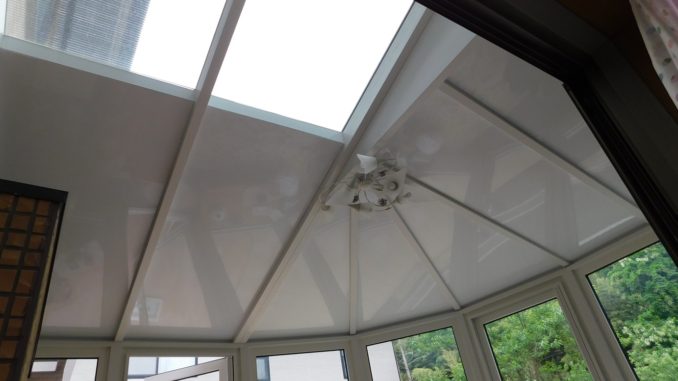 悠Uサンルームの基準屋根仕様は強化ガラス(厚さ5mm)とツインカーボヒートカット(厚さ10mm)ですが、屋根の一部を遮熱・断熱仕様にすることができます。