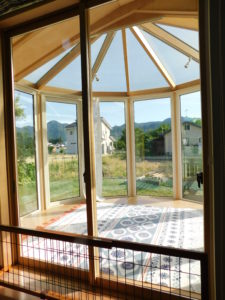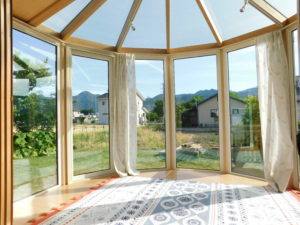 既存の部屋とサンルームとの間に取り付けた間仕切りのサッシです。