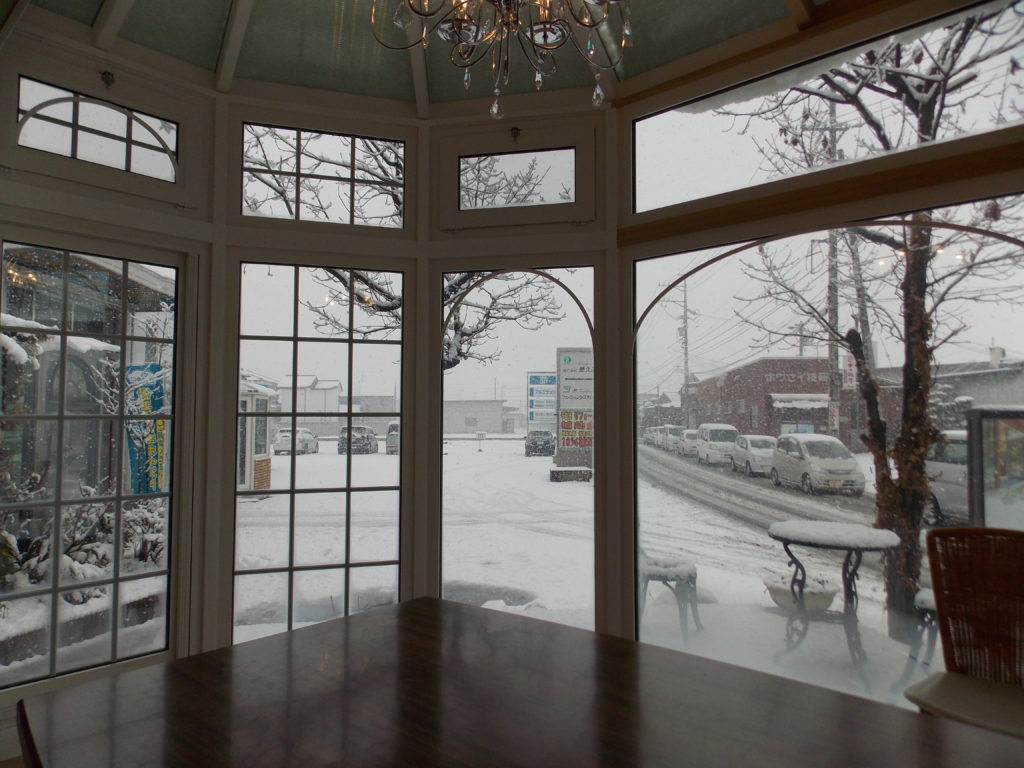 悠Uサンルーム内部からの雪景色。