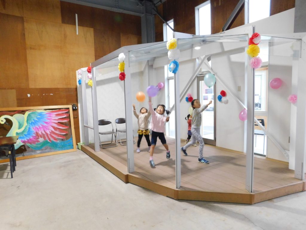 近所の子供たちが来て、風船を投げたり踊ったり。楽しんでくれたようです。