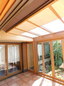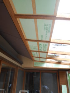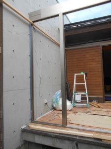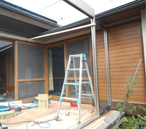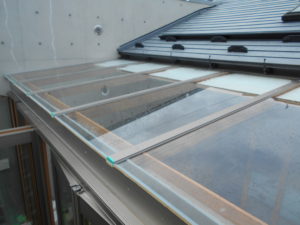 今回の屋根は前部分が強化ガラスのみ、既存建物側が断熱仕様です。