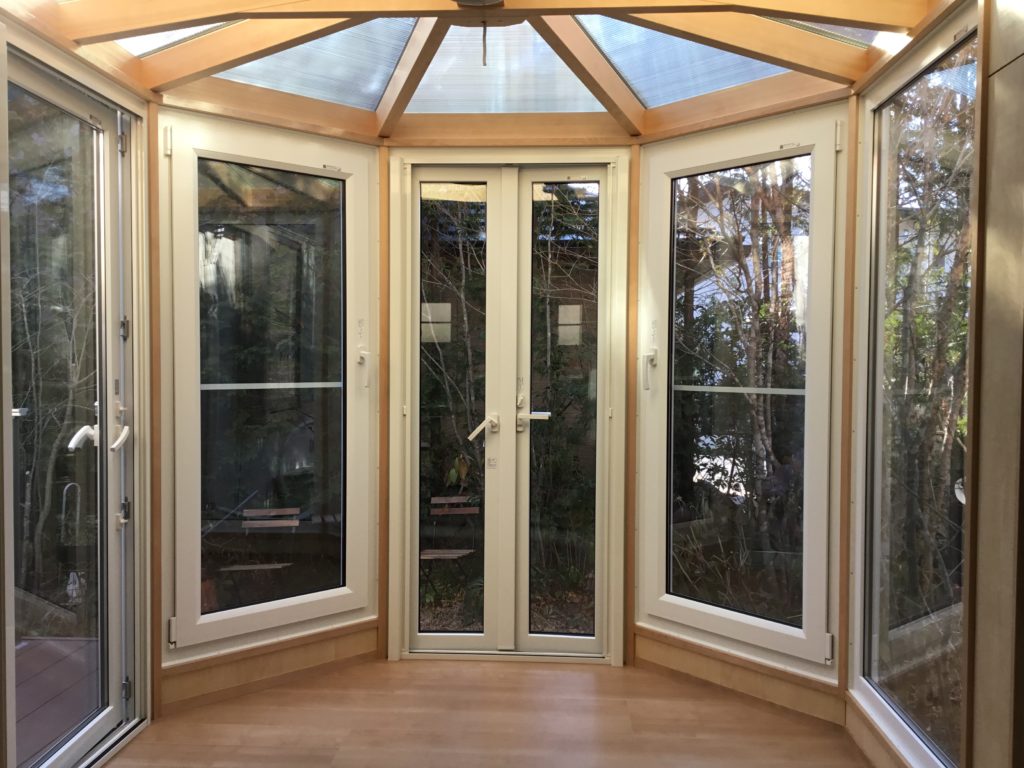 我が家には「ソラ」という犬がいます。ソラと一緒に過ごせる部屋を作りたいと思い、以前から気になっていた幾久屋さんにサンルームをお願いすることにしました。できあがってみて改めて実感したことは、幾久屋さんのサンルームは他の会社のサンルームとは大きく違うということです。いわゆる「サンルーム」ではなく、むしろ一つの「部屋」を庭に増築したという感じです。光が燦燦と降り注ぐ部屋を。