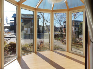 弊社のサンルームは人だけでなく地球環境にも優しい商品です。地元の長野県産の木材を積極活用します。より多くの人にこの商品をとどけることは、世界各国が進める持続可能な開発目標(SDGs)の達成に貢献するものと考え、今後も部品生産や施工の簡略化、マニュアル化を進めていく所存です。
