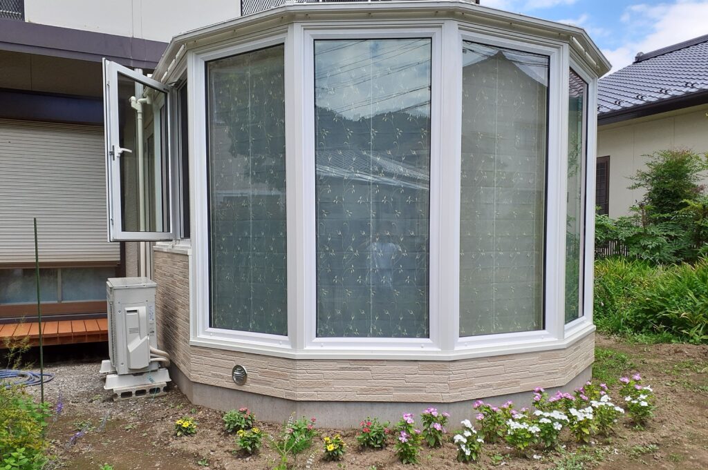 ↓ 悠Uサンルームの特徴である前面円形部分の天井(丸い突起のある部分)は、脱着できる天井です。
